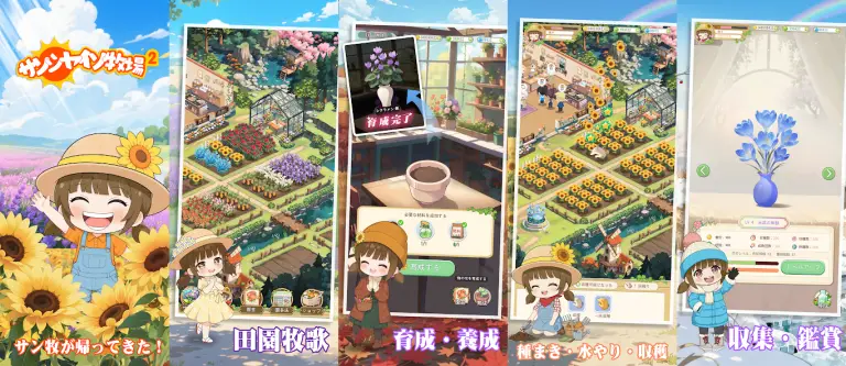「昔mixiで『サン牧』にハマってたなぁ……懐かしい!」「難しいこと抜きで、ただお花を育てて癒やされたい」「無課金でも自分のペースでまったり遊べる牧場ゲームを探している」