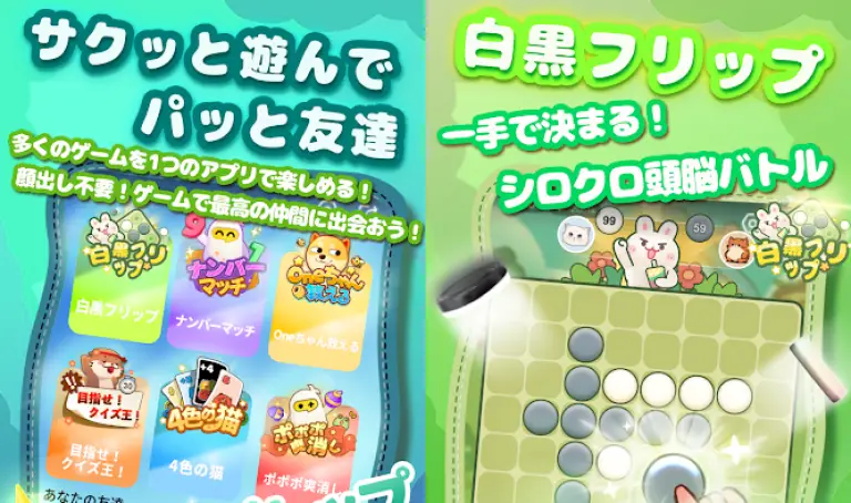 また、1プレイ3分以内で完結するミニゲームが多数収録されているのも嬉しいポイントです。通勤時間やちょっとした休憩時間など、スキマ時間にサクッと遊ぶことができます。「白黒フリップ」のような戦略的なゲームから、「クイズ王」のような脳トレ系のゲーム、さらには「Oneちゃん救える」といったパズルゲームまで、幅広いジャンルが揃っているので、飽きずに長く遊べるでしょう。